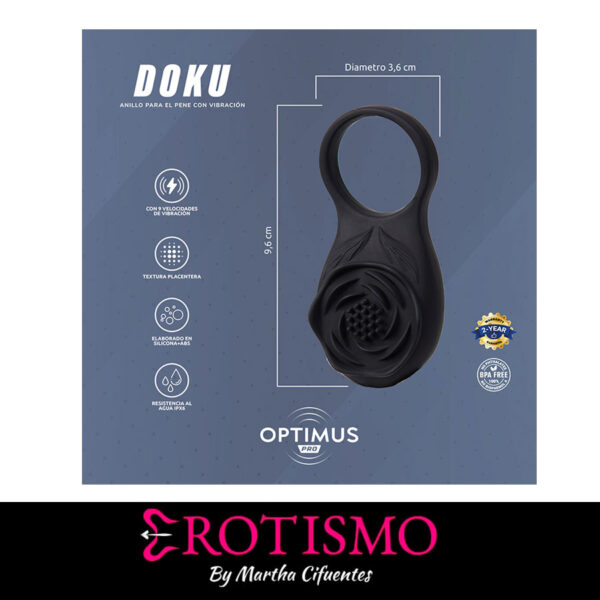 Descubre una nueva dimensión de placer con el Anillo Vibrador para el Pene Doku. Diseñado con texturas estimulantes, este anillo no solo aumenta las sensaciones en el pene, sino que también ayuda a prolongar la duración de tus encuentros íntimos. Con 9 velocidades de vibración y control a través de una app interactiva disponible para Android e iOS, puedes personalizar la experiencia y disfrutarla al máximo.
