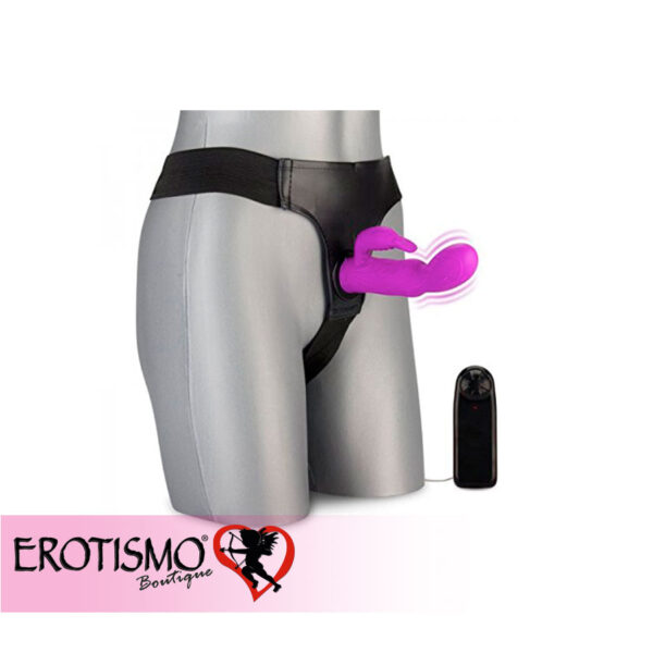 Obtén toda la satisfacción y placer con este arnés con vibrador de velocidad variable, conejo de silicona perfecto para la estimulación de clítoris